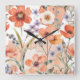 Terracotta Wildflower Rustic Boho Wall Accent Square Wall Clock
