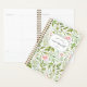 Chic personalized planner features a tropical botanical pattern of green jungle leaves, fern foliage and pink flowers. Personalize with three lines of custom text.