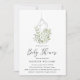Invitations de douches pour bébé botaniques modernes et élégantes avec un terrarium aquarelle peint à la main avec feuillage de forêt verte et une police de caractères de calligraphie moderne. L'envers des invitations de douches pour bébés sans sexe présente un feuillage assorti. Personnalisez les invitations botaniques à la douche bébé avec vos détails de baby shower pour un invitation qui impressionnera les invités.