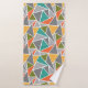 Ce kit de serviettes est décoré dans un style moderne du milieu du siècle avec des triangles qui donnent un aspect terrazzo au sol, en gris, turquoise, orange, or et vert.