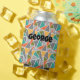 This can cooler has a mid-century modern design of triangles making a terrazzo floor look, in greys, turquoise, orange, gold, and green. Keep the name, change it, or delete it completely.