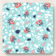 Fun terrazzo coaster with a geometric seamless pattern with weird eyes on some of the abstract marble stones in coral and blue colours.