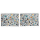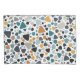 A terrazzo style design featuring random shapes in a range of sizes and colours.