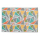 This pillowcase has a mid-century modern design of triangles making a terrazzo floor look, in greys, turquoise, orange, gold, and green.