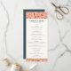 An on-trend terrazzo stone pattern with mid-century inspired typography give this skinny format wedding program a hip vibe in a desert inspired colour palette of rust, blush and slate blue. Keep wedding guests in the know with an easy to personalize the ceremony order and list of bridal party members on this two-sided program.