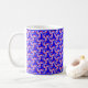 Terrazzo style geometric abstract pattern mug in shades of blue and red