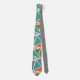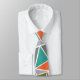 This necktie has a mid-century modern design of triangles making a terrazzo floor look, in greys, turquoise, orange, gold, and green.