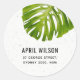 TERRAZZO WHITE GREEN MONSTERA LEAF FOLIAGE ADDRESS CLASSIC ROUND STICKER