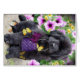Le chiot mignon de Terre-Neuve tenant le récipient de papillons jaunes sur le fond des fleurs sauvages colorées font à celle-ci d'une conception aimable le cadeau parfait pour n'importe quel amoureux des chiens.