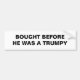This is a black and white bumper sticker for a Tesla, that says I bought before he was a Trumpy. It is easy to customize to your own saying.