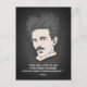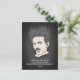 Portrait of Nicola Tesla with his hair statically raised and, "You will live to see man-made horrors beyond your comprehension," quote. B/w art on t-shirts, sweats, cards, novelty gift swag.