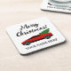 Red Tesla pickup truck hauling a Christmas tree custom beverage Coaster . Modern version of old vintage Chevy truck hauling a Christmas tree. Personalized gift for the holidays. Novelty Holiday decor items.