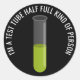 Image of a half full test tube with text reading: "I'm a test tube half full kind of person"