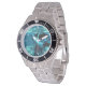 Has heft and feel of expensive stainless steel quartz watches. Good band with safety catch.  I removed links, which is easy because engraved arrows show direction to push the linking pins. As always by this seller, the image (a railroad logo) is a perfect reproduction of my emailed image, and is precisely spaced and aligned.