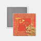 Golden Dragon paper-cut style illustration with large golden "Têt" + text in Vietnamese: "tết đến xuân về" meaning "Têt comes, Spring returns" on decorated red background. Design on square magnet. Matching greeting card, postcard, Li XI A7 red envelope, sticker and more. Perfect for Vietnamese New Year of the Dragon 2024. ---------------- "The Dragon (simplified Chinese: 龙; traditional Chinese: 龍) is one of the 12-year cycle of animals which appear in the Chinese zodiac related to the Chinese calendar. The Year of the Dragon is associated with the Earthly Branch symbol 辰, pronounced chen. It has been proposed by one academic researcher that the Earthly Branch character may have been associated with scorpions; it may have symbolized the star Antares." People born within these date ranges can be said to have been born in the "Year of the Dragon", while also bearing the following elemental sign: 22 January 1928 - 9 February 1929 = Earth Dragon,