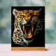 Fierce Puissant Leopard Roaring portrait d'attaque gros avec de longs crocs. Illustration vectorielle originale isolée sur blanc Copyright BluedarkArt TheChameleonArt.