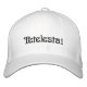 Fits well due to elastic edging, not adjustable. Good qualty material. Good quality embroidering. Subtle lettering (white on beige) just as my wife likes.