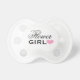 Un accessoire de mariage de pacificateur personnalisé et élégant pour votre petite fille / fille de fleur de bébé. Couleurs classiques noir et blanc avec accent de coeur rose clair.