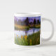 This photo features Schwabacher Landing in the shadow of the Grand and Teewinot Mountains and it's reflection in the Snake River pool.