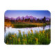 This photo features Schwabacher Landing in the shadow of the Grand and Teewinot Mountains and it's reflection in the Snake River pool.