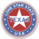 Texas design with flag of United States colours, rounded shape, car sticker.