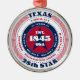 Show your state pride this holiday season with this unique Christmas ornament dedicated to Texas, the 28th state. It has red, white, and blue patriotic colours with a circular typography design on a white background. The text includes facts about the state, such as its name, capital, state abbreviation, region, time zone, geographic coordinates, the year of its statehood, and its resident's name. It's a great gift for those who wish to celebrate their state or for those who are feeling nostalgic about their home state.