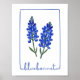 This art print features a watercolor portrait of a Texas Bluebonnet.