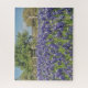 Original photograph of Texas Bluebonnet flowers along a wooden fence on a country road. Photograph given slight special effects for a graphic soft and painterly style. This puzzle is 16” x 20” with 520 pieces. They are well made of sturdy cardboard mounted on chipboard. They are printed in vivid colours and come in a custom gift box with the image design printed on top! Made in the U.S.A.
