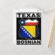 Classic US route sign style design, with the text TEXAS BOSNIAN, and the flags of the state of Texas and Bosnia Herzegovina.