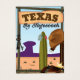 Texas By Stagecoach cartoon texan landscape vacation poster.
