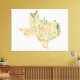 Texas Cactus Watercolor Illustration Map Canvas Print