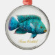 Original painting of a Carpintis or Texas cichlid by artist Carolyn McFann of Two Purriing Cats Studio printed on a quality and customizable holiday ornament for tropical aquarium fish fans.