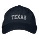 A Basic Adjustable Cap embroidered with the (customizable) text Texas. . Select the hat and text colour and style of your choice.