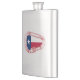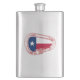 The product is a good size and came exactly as it was pictured. The lid is not attached to the flask, which could be dangerous on drunken nights... The print came out surprisingly well and looks very sharp. Would definitely recommend.