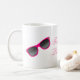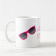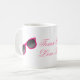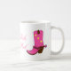 Fun girly mug for any cowgirl who loves the colour pink, with graphics of a pink pair of cowboy boots and sunglasses. Text reads Texas Girls Love Pink, and can be personalized to read what you want.