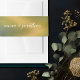 Featuring a rich navy blue background, this invitation belly band is adorned with delicate Cottagecore Christmas motifs (e.g., subtle botanicals, tiny deer, classic patterns – adjust based on actual design), creating a timeless and enchanting look.