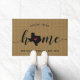 Show some home state pride with this custom doormat featuring "home" in calligraphy script lettering with a silhouette map of the state of Texas standing in for the letter "O." A heart illustration inside the state map completes the design; you can change the position of the heart to your home city by opening the design tool and dragging the heart shape to your favourite spot. Personalize with your home city, family name and year established to create a perfect finishing touch for your front door, or a memorable housewarming gift.