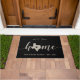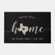 Show some home state pride with this custom doormat featuring "home" in tan calligraphy script lettering with a silhouette map of the state of Texas standing in for the letter "O." A heart illustration inside the state map completes the design; you can change the position of the heart to your home city by opening the design tool and dragging the heart shape to your favourite spot. Personalize with your home city, family name and year established to create a perfect finishing touch for your front door, or a memorable housewarming gift.