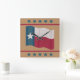 Show your pride of Texas with this square wall clock with original art of a red, white and navy blue waving Lone Star Flag on a tan background. The top and bottom borders are red lines with blue stars above and below the lines. Great clock to show your love of Texas in your home or business. Easy to customize or personalize.