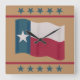 Texas Lone Star Flag Red White Blue Tan Stars Square Wall Clock