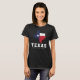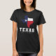 Texas, Lone Star State with flag map design women's black T-Shirt. This design features the word "Texas" in white with the map of the state filled with the flag of Texas. Wear this T-Shirt to show you are patriotic and proud to be from Texas or to give as a gift to any Texan.