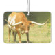 A Texas Longhorn seeming to say "Hi, Ya'll" with ' Texas " text inclided. A great air freshener pendant to show your pride of the lone star state.