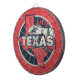 Hit the bullseye with this Texas-inspired dartboard, featuring a vintage travel poster style that brings the Lone Star State to life. With a rustic weathered palette of red, white, and blue, this design showcases iconic Texas details like a cowboy on horseback, star, and an oil well, capturing the rugged charm of the state. Perfect for a man cave or game room, this dartboard can be personalized with custom text, including a name and established date, making it a unique addition to any space. Whether it’s a gift for him or any dart lover with a Texas spirit, this personalized custom dart board promises hours of fun with a touch of state pride.