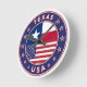 Badge of Texas with flag of Texas and flag of USA colours, rounded shape.