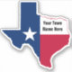 Customizable Texas shape sticker with TX flag design that you can add your own town name to. Use one of many fonts and sizes.