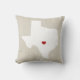Texas state pillow with heart placed for hometown. You can customize heart placement for different hometowns. Faux oatmeal linen background with white state and red heart. Makes a great wedding or new home gift!