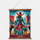 Embrace the spirit of the Texas frontier! This striking scene captures a confident woman in a cowboy outfit, flanked by majestic longhorns against a dramatic sunset and city skyline. Her vibrant red hat and fringed skirt embody the boldness and vibrancy of Texas culture. Celebrate adventure, tradition, and the heart of the Lone Star State!