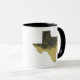 A lovely coffee mug for the Texas native, this design features a black inside and handle with a white background. There is an image of texted depicted and black and gold faux glitter. Personalize it with text, images, and other elements. Place your order today!