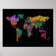 A typographic text map of the World. Each country is represented by its name, which is shaped to fit into the geographically correct area. Virtually all countries are represented expect for some of the very smaller islands in the Pacific and Caribbean.