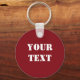A red Keychain with a template for your text. The red colour is a match for the mens 3/4 red raglan t-shirt.
